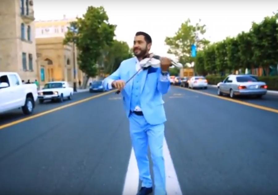 Skripka ifaçısının klipi dəniz sahilində lentə alınıb.