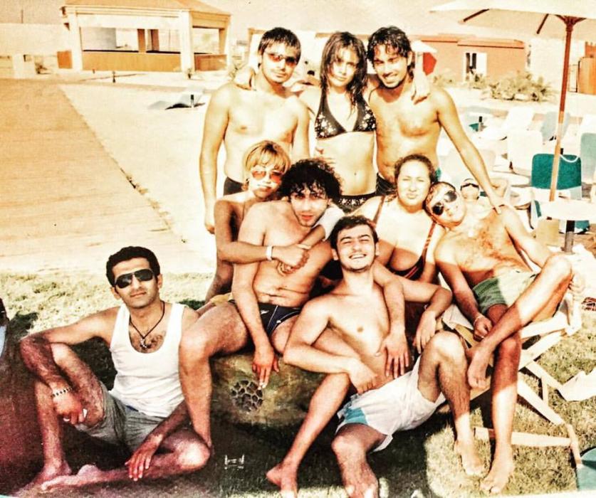 “Bu gün ev günü elan etmişdim. Köhnə alıbomlara baxdım. 3-4 şəkil diqqətimi çəkdi, 10-11 il bundan əvvəl olan foto tapdım. Həmin vaxtlarda Kənan bayramov Röya ilə yox “N bothers” qrupuyla, mən Kərim Abbasovla çalışırdıq. Anar Hüseynzadə hələ bakıda idi, Samir Cavadzadənin isə sütül vaxtlar idi. Emil Bədəlov lap yadımdan çıxmışdı”.