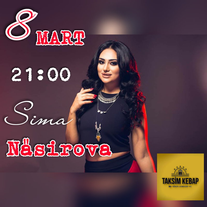 DİA.AZ xəbər verir ki, müğənni Sima Nəsirova "8 mart" Beynəlxalq Qadınlar Günündə çıxış edəcək. Konsert proqramı "Taksim Kebap" restoranında saat 21:00-da baş tutacaq. İfaçı bayram günündə xanımlara unudulmaz anlar yaşadacaq.