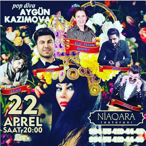 DİA.AZ: - Xəbər verdiyimiz kimi, xalq artist, pop diva Aygün Kazımova aprelin 22-də "Niaqara" restoranında konsert proqramı ilə çıxış edəcək.