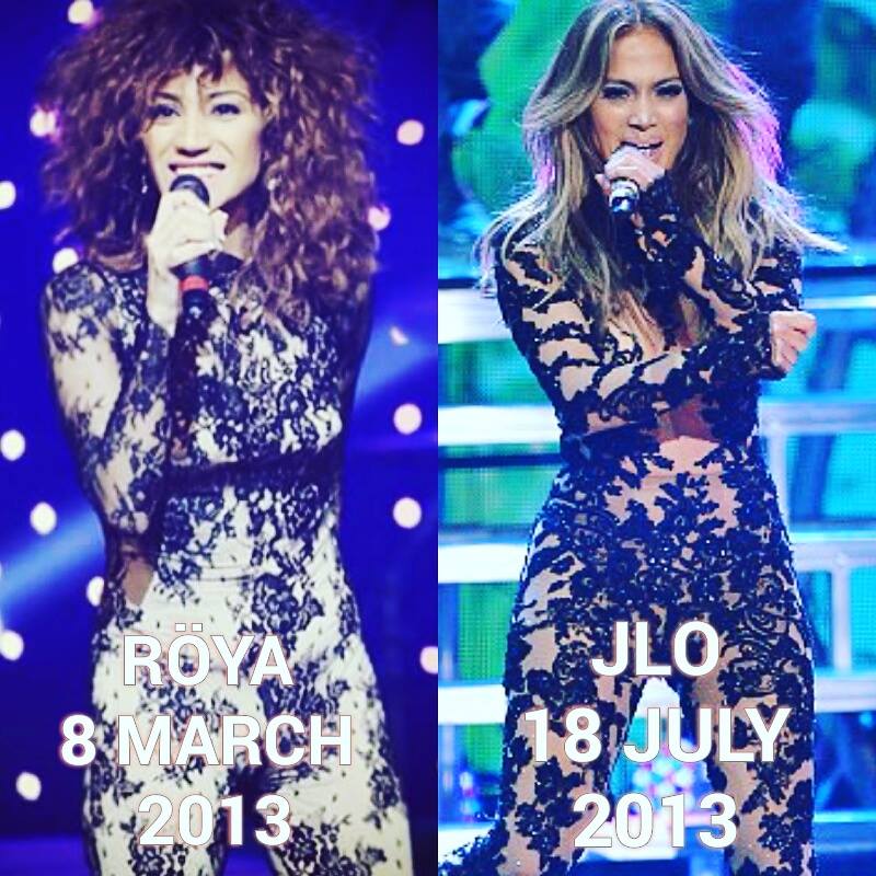Şəkillərdən hətta Röyanın bir neçə il əvvəl geyindiyi əlbisələrin bənzərlərinin Ajda Pekkan, Sibel Tuzun, Jelena Karleusa, Cennifer Lopez kimi dünya şöhrətli müğənnilərdə də olduğu görünür.