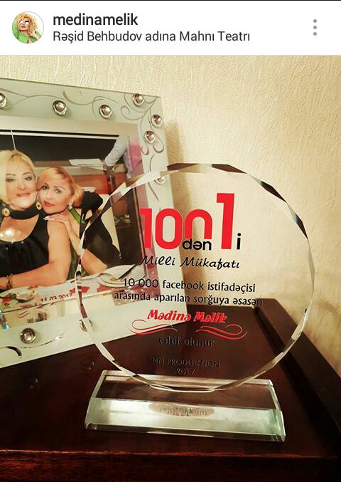Gecədə Mədinə Məlik "NN production" tərəfindən adıçəkilən mükafatla təltif edilib.