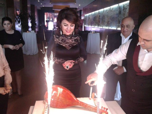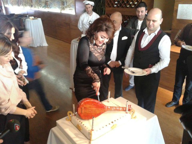 Sonda sənətçiyə saz formasında tort hədiyyə edilib.
