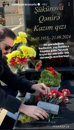 Axşam.az xəbər verir ki, sənətçi anasının məzarı başında çəkdirdiyi fotonu paylaşaraq bunları yazıb: