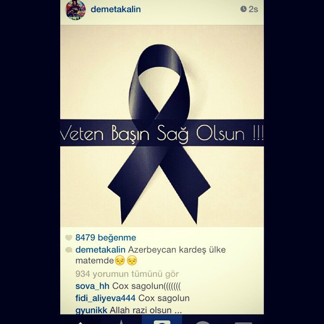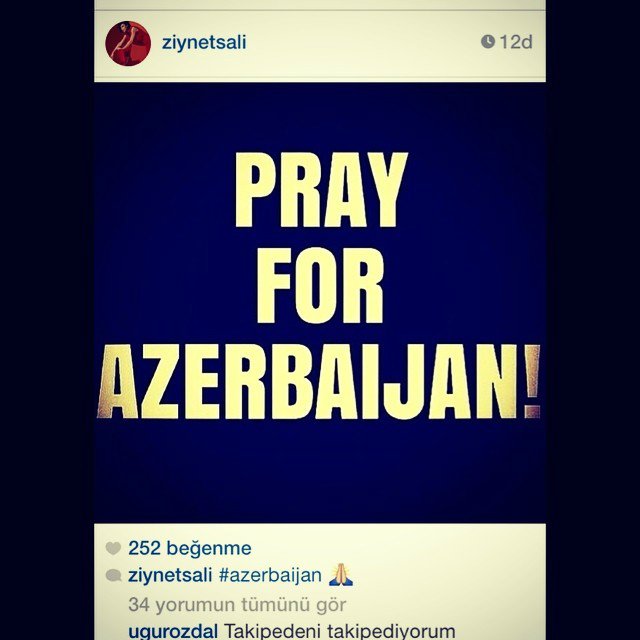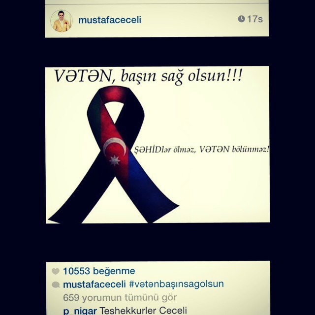 Petek Dinçöz "Şəhid şəhidimizdir. Allah rəhmət eləsin Azərbaycan!", Demet Akalın qara lent üzərində "Vətən başın sağ olsun" yazılan şəkil paylaşıb. "Azərbaycan qardaş ölkə yasdadır"- şərhini bildirib.