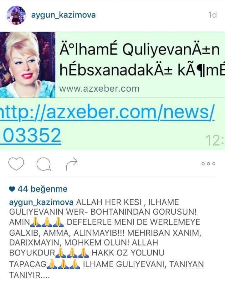 İlhamə Quliyevadan Aygünə ŞOK CAVAB: - "Onu sancı tutub, 1 milyon ödəyəcək"