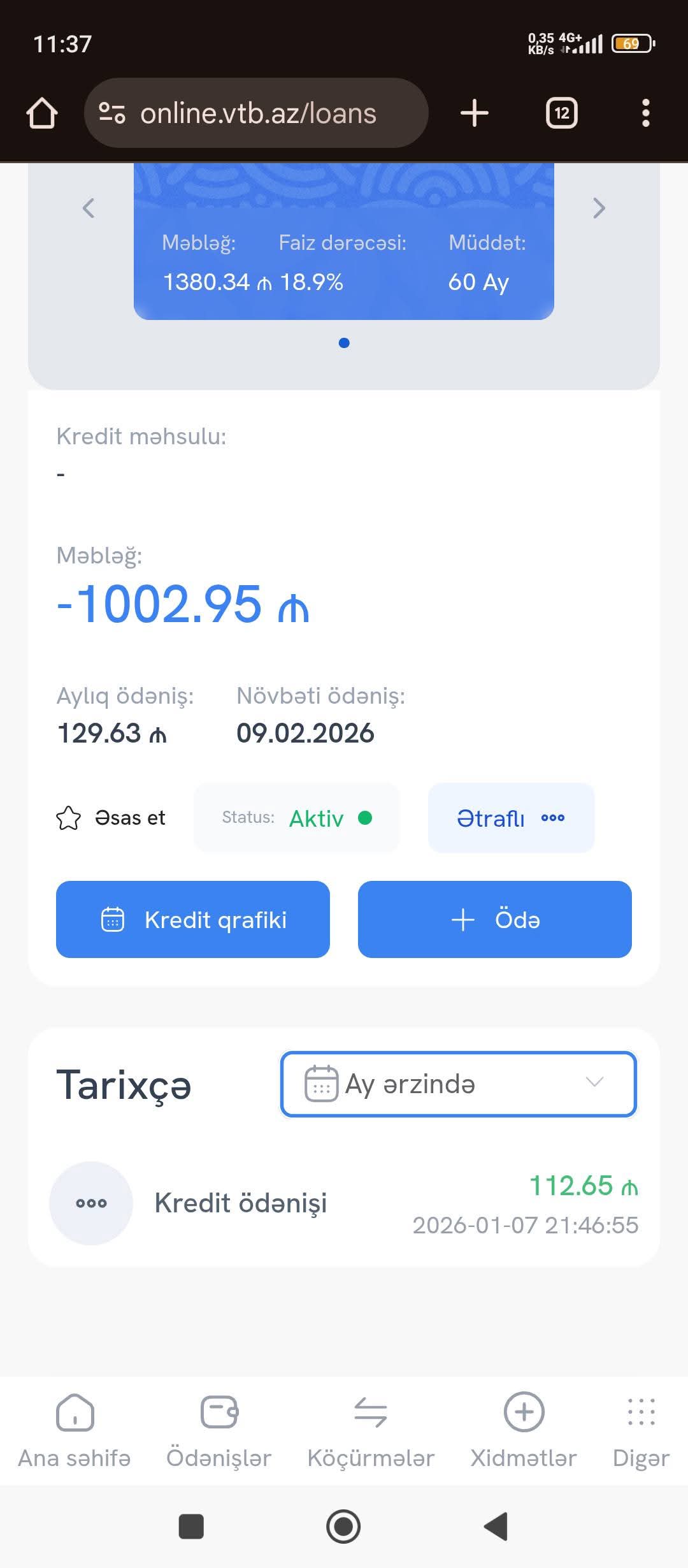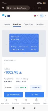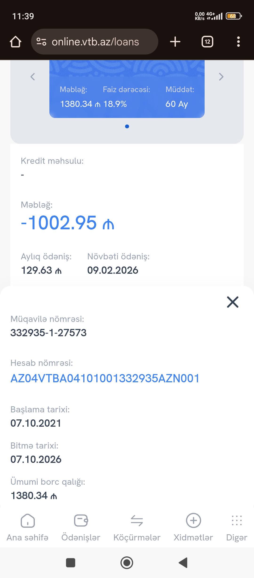 Bu ay ödəniş eləmişəm, baxiram 130 manatdan 1.394 manat borc yazib, ödəniş eləmişəm 1.380 olub. Necə olur ki, 130 manat ödənişə 14 manat çıxıb, borc yazıb yenə... 1002.95 toxunmaz olaraq qalır. Biri məni başa salsın: bəlkə mən səhv edirəm....