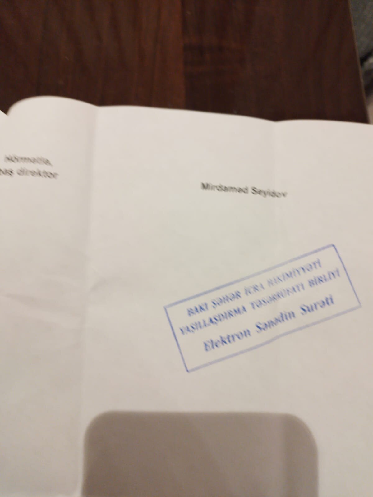 Nizami rayonunun komissarı işləyib. Yaşarla əlbir olaraq bütün oğurluqları bərabər edirlər. Yaşıllaşdırma Təsərrüfatının nəzdində ağac-bəzək bitkiləri savxozu var. Həmin savxozun işi ondan ibarətdir ki, Bakı şəhərinə lazım olan gülü, çiçəyi əkib, becərib vermək. Ancaq bunlar tender edərək gülü, çiçəyi pulsuz götürürlər ayrı yerdən guya aldılar kimi qələmə verirlər. Dövlətin büdcəsini bu yolla talayırlar. Qurumdan mənə məktub gəlib və Mirdaməd Seyidov mənə yazıb: "Sənin dediyin faktların heç biri doğru deyil”. Mən baş prokurorluğa belə müraciət edirəm. Demişəm ki, 3 milyondan çox pul oğurlanıb. Prokuror müəyyən səbəblərdən oranı yoxlaya bilmədiyini dedi. Hətta Ekologiya Nazirliyinə də məsələ ilə bağlı müraciət etdim. Nazirin birinci müavini ilə görüşdüm. Mənə bildirdilər ki, "ora biz yox, Eldar Əzizov baxır”. Eyni zamanda mən Mehriban xanıma da müraciət etdim. Bir müddətdən sonra mənə Yaşıllaşdırmadan mənə məktub gəlir ki, "Sizin Bakı şəhəri İcra Hakimiyyətinə olan müraciətinizə Yaşıllaşdırma İdarəsində baxılıbdır”. Yəni, oğurluq edən təsərrüfat mənim şikayətimə baxır. Prezident deyir ki, şikayət olunan ünvana şikayətçinin məktubunu göndərməyin, araşdırın. Əgər mənim qurum haqqında dediklərim yalandırsa, iş qaldırın. Yalan olsaydı, mənim torbamı indiyə qədər tikmişdilər. Həmin ağac-bəzək savxozunda bir sexi mən yaratmışdım. İlə 3 milyon bitki yetişdirirdim. İndi heç 300 min də yetişdirə bilmirlər. Mən bu qanunsuzluqları dövlətimizə, dövlətçiliyimizə, Prezidentə dəstək olmağa görə işıqlandırıram. Çünki dövlətin büdcəsini talayırlar. Xırdalıqları ölkə başçısına çatdırmırlar. Prezident Administrasiyasında Süleyman İsmayılov var, məktublar şöbəsinin müdiridir. S. İsmayılov orada alver edir və məktubları itirir.
