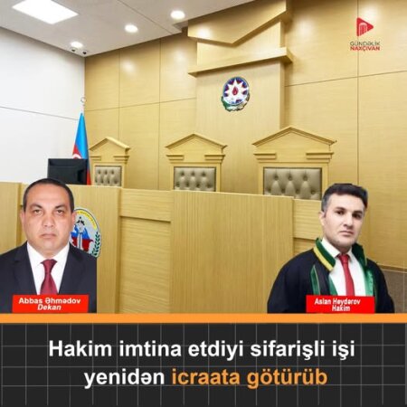 Naxçıvan şəhər Məhkəməsinin hakimi Aslan Heydərov ötən həftə xitam verdiyi, universitet müəllimi Aysel Quliyevaya qarşı sifarişli işi dünən yenidən icraata götürüb. Onun bu zidiyyətli qərarı məhkəmə sədri Gülnar Səfərəliyevanın göstərişi ilə qəbul etdiyi bildirilir.