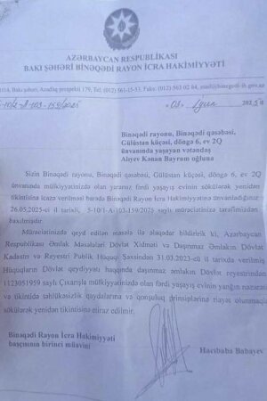 Qeyd edək ki, Dövlət Şəhərsalma və Arxektura Komitəsinin qanun pozuntusundan nə qədər xəbərdar olmalarını deyə bilməsək də, Hacıbaba Babayevin və Binəqədi icra hakimiyyətinin vəzifəli şəxslərini bundan xəbərləri var. Amma nədənsə Binəqədi rayon İcra Hakimiyyəti qanunsuzluğa göz yumur və bunu adi hal kimi qəbul edirlər.
