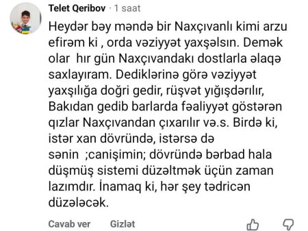 H.Oğuz yazır: "Naxçıvanın yeni hökumətini tərifləyənlərin arqumentlərini dinlədikcə yerimdə donub qalıram. Hər kəs yeni xüsusi nümayəndənin əxlaqsızlıq yuvalarını bağlamasından və "canişin"in Naxçıvana gətirdiyi qədim peşə sahiblərini təyyarəyə doldurub gəldikləri yerə göndərdiyindən danışır.