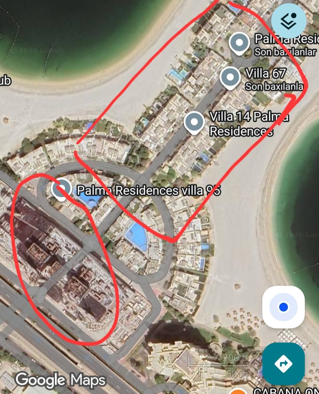 C.Həsənli daha sonra bildirir: "ABŞ və İsrailin bombardmanlarına cavab olaraq İran martın 1-də Dubayıı raket atəşinə tutub. Raketlərdən biri PALM JUMEYRA süni adasına atılıb. Həmin ərazidə Azərbaycanın Fövqəladə hallar naziri Kəmaləddin Heydərovun oğulları Nicat və Tale Heydərovlara məxsus hər birinin müharibədən əvvəlki dəyəri 30 milyon dollar dəyərində olan 6 rezidensiya yerləşir. Raket zərbəsindən ərazidə böyük dağıntı baş verib. Onun izləri Google Map üzərindən də aydın görünür. Zərbənin təsiri o qədər güclü olub ki, ətrafdakı binalara, o cümlədən Heydərovlara məxsus azı 2 rezidensiyaya zərər dəyib, şüşələri sınıb. Raket zərbəsi zamanı süni adada 4 nəfərin yaralandığı yerli hökumətin media ofisi tərəfindən təsdiqlənib.