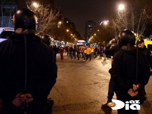 Polisin bu şəkildə davranışını qəbul etməyən В«QalatasarayВ» tərəfdarları da onlara daş atdığı zaman ispan polisinin azarkeşlərə cavağı olduqca sərt olub. Məlumatda deyilir ki, polis dəyənəkləri işə düşdükdən sonra yüzlərlə В«QalatasarayВ» tərəfdarı yaralanıb və hətta onların üzərinə atlar da yeridilib.