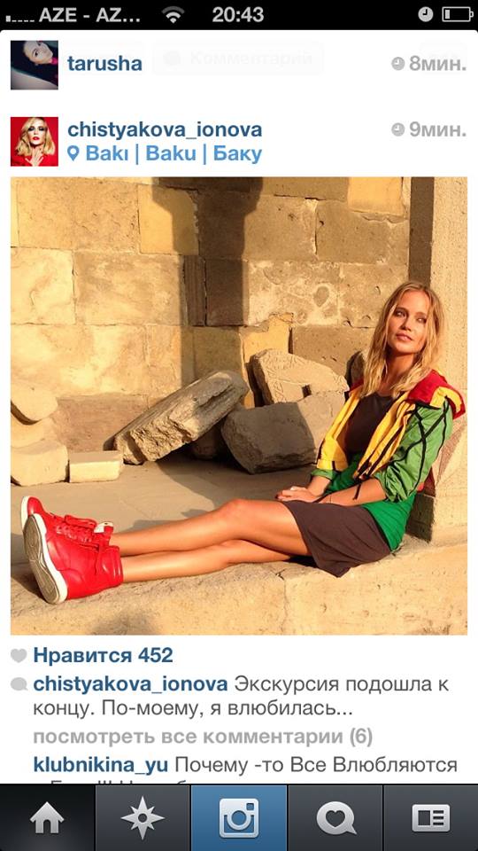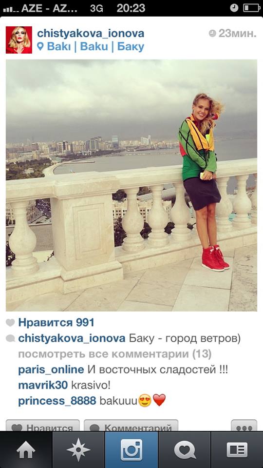 Milli.Az bildirir ki, əsl ad və soyadı Natallya Çistyakova-İonova olan 27 yaşlı müğənni İnstagram fotoservisindəki profilində Bakıya, xüsusilə də İçərişəhərə valeh olduğunu yazıb.