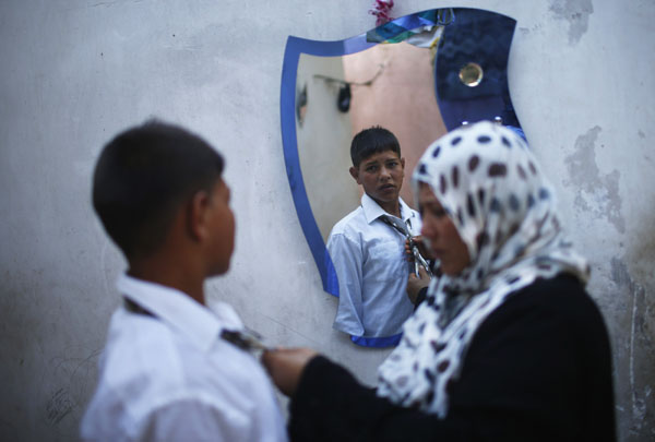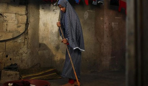 "O, sınıq güzgüdə saçlarını düzəldəndə fərqinə vardım ailənin necə yoxsul olduğunun. Əhməd və Tala 3 otaqlı evdə ailənin digər 9 üzvi ilə birlikdə yaşayacaq. 2009-cu ildə İsrail bombardımandan sonra yrarsız hala düşən evlərini belə təmir etmək imkanları olmayıb".