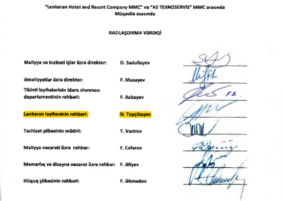 Ərazidə iş aparan tikinti şirkətləri müqaviləni formal olaraq kağız üzərində mövcud olan “Lenkeran Hotel and Resort Company” MMC ilə bağlasalar da, layihəyə ümumi nəzarəti PMD Group LLC həyata keçirir.