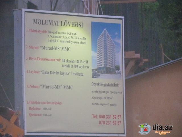 O, bu barədə “Qafqazinfo”ya müraciətində danışıb. Şikayətçi qeyd edib ki, “Murad-MS MMC” şirkəti 2016- ci ildən 8-ci mikrorayon 3078-ci məhəllə, 21-ci binanın qarşısında tikintiyə icazə sənədi olmadan 17 mərtəbəli bina tikir: