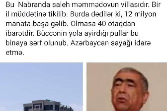 Onuda bildirək ki, Avtomobil Yolları Dövlət Agentliyinin rəhbəri tikdirdiyi villa bunula yekinlaşmayıb. Onun Bibiheybət yaxınlığında və digər yerlərdə də dəyəri milyonlarla ölüçülən böyük sarayları var.