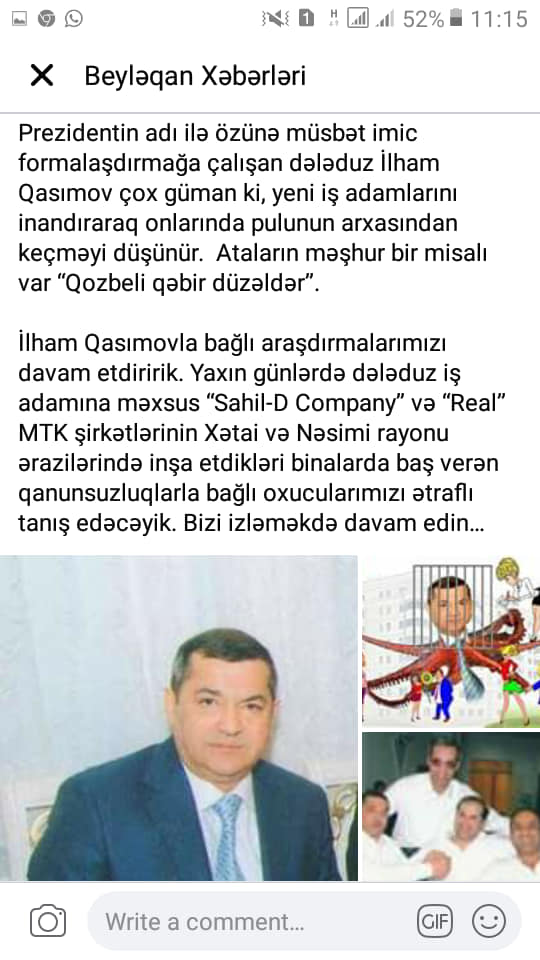 İlham Qasımovla bağlı araşdırmalarımızı davam etdiririk. Yaxın günlərdə dələduz iş adamına məxsus “Sahil-D Company” və “Real” MTK şirkətlərinin Xətai və Nəsimi rayonu ərazilərində inşa etdikləri binalarda baş verən qanunsuzluqlarla bağlı oxucularımızı ətraflı tanış edəcəyik. Bizi izləməkdə davam edin…