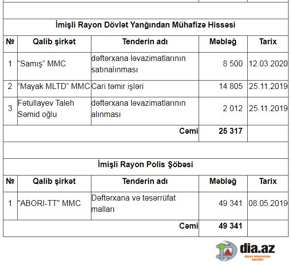2019-2020-ci illərdə İmişlidə tenderləri qazanan şirkətlər məlum olub.