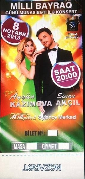 Xalq artisti Aygün Kazımovanın 8 Noyabr tarixində türkiyəli müğənni Sinan Akçılla birgə konserti olmalı idi. SİA-nın verdiyi xəbərə görə, ifaçınının verəcəyi konsert ləğv olunub. Belə ki, xalq artisti konsertinin baş tutmamasının səbəbini açıqlayıb: “Sevənlərimə pis xəbərim var. Sinanla verəcəyim konsert ləğv olundu. Səbəbi isə qeyri-peşəkar təşkilatçılıqdır. İstəməzdim belə alınsın, ancaq oldu. Çox təəssüfənirəm”.