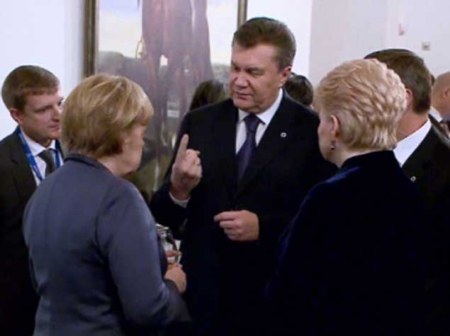 İnternetdə isə Ukrayna prezidenti Viktor Yanukoviçin Vilnüsdə dövlət və hökumət başçılarının naharından əvvəl Litva prezidenti Dalya Qribauskayte və Almaniya kansleri Angela Merkel ilə ayaqüstü söhbətinin videosu yayılıb. Videoda D. Qribauskaytenin V. Yanukoviçi assosiasiya sazişini imzalamaq üçün dilə tutduğu görünür. Lakin V. Yanukoviç cavab verir ki, artıq hökumətin bu barədə qərarı var. Söhbətə A. Merkel qoşulduqdan sonra V. Yanukoviç ona Ukraynanın iqtisadi durumunun ağırlığından danışır: “Mən istəyirəm ki, siz məni başa düşəsiniz. Mən 3,5 ildir təkəm. Çox güclü Rusiya ilə qeyri-bərabər şəraitdə tək qalmışam...”