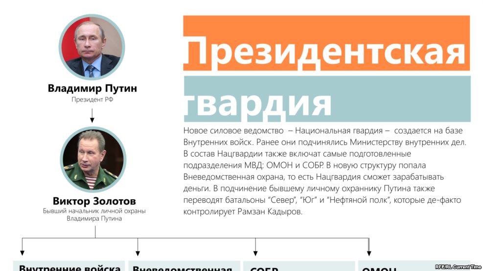 Rusiya Prezidenti Vladimir Putin iyulun 3-də Milli Qvardiyanın yaradılması barədə qanun imzalayıb. Bu qüvvə keçmiş Daxili İşlər Nazirliyinin əsgərlərinin bazasında yaradılır.