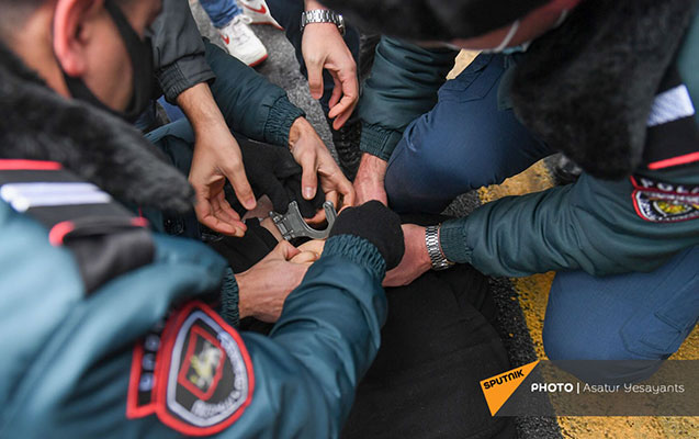 Artıq hüquq-mühafizə orqanları fəalları polis bölməsinə aparır.