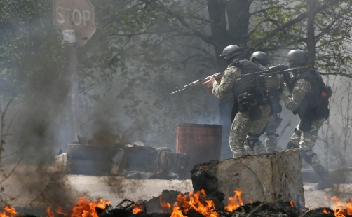 Hərbçilər Kramatorskun 30 km yaxınlığında meşəyə toplaşmış silahlıları zərərsizləşdirməyə çalışırlar. Helikopterlər meşə üzərindən uçuşlar həyata keçirirlər.