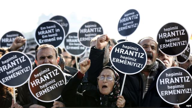 Nümayişçilər əslən erməni olan türkiyəli jurnalist Hrant Dinkin qətlinin ədalətli araşdırılması tələb ediblər.