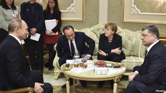 Ukrayna, Rusiya, Almaniya və Fransa liderlərinin Minskdə gərgin sammiti fevralın 12-nə keçən gecəyədək çəkib. Tərəflər Ukraynanın şərqində 10 aylıq müharibəyə son vermək planını dartışırlar.