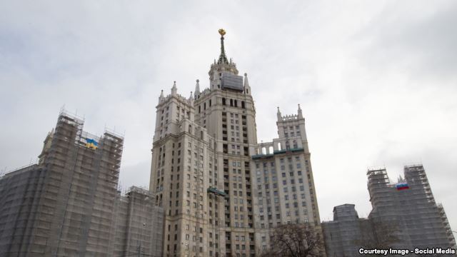 Ötən ilin avqustunda da oxşar aksiya keçirilmişdi. 5 rusiyalı kişi və qadın elə həmin binanın üzərindəki sovet ulduzunu Ukrayna bayrağının rənglərinə boyamışdı. Sonradan Moskva məhkəməsi fəallardan birinə xuliqanlıq və vandalizmə görə 27 aylıq həbs kəsdi. Digər 4 nəfər bəraət aldı.