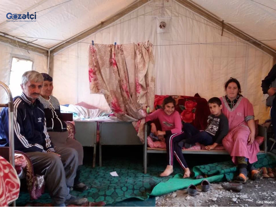 Ağdamdan məcburi köçkün olan və 26 ildir ki, Qəbələnin Nij kəndi yaxınlığında məskunlaşan Əliyevlər ailəsinin gecələməyə yeri yoxdur. Ailə başçısı Zabil Əliyev danışır ki, mayın 20-dən 21-nə keçən gecə güclü yağış nəticəsində məskunlaşdıqları çadıra su dolub, ailə üzvləri iki gündür ki, daldalanmağa yer tapmır. Ailə nə edəcəyini, harada gecələyəcəyini bilmir.