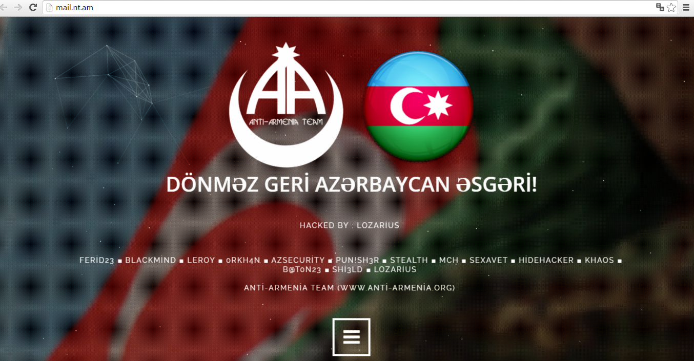 Damarlarından Azərbaycanlı qanı axan hər bir Azərbaycan vətəndaşını sevindirmək, əsgərlərimizə göstərdikləri qəhrəmanlıqlara təşəkkür bildirmək üçün bu gün Azərbaycanlı "Anti-armenia Team" xaker qrupu tərəfindən ermənistanın bir sıra saytlarına hücum xarakterli kiber əməliyyat həyata keçirilmişdir. Hücuma məruz qalmış veb saytlarda vətənpərvərlik ruhunda səslənən musiqi fonunda "intiqama çağırır, susmaq bilməyir cəngi", "dünənki mərdliyinin bu gün gəlib zamanı", "səni gözləyir meydan, döyüşlərin sultanı", "igidim, canım mənim", "haydı, aslanım mənim", "marş irəli, Azərbaycan əsgəri", "dönməz geri Azərbaycan əsgəri" şüarları yazılmışdır.