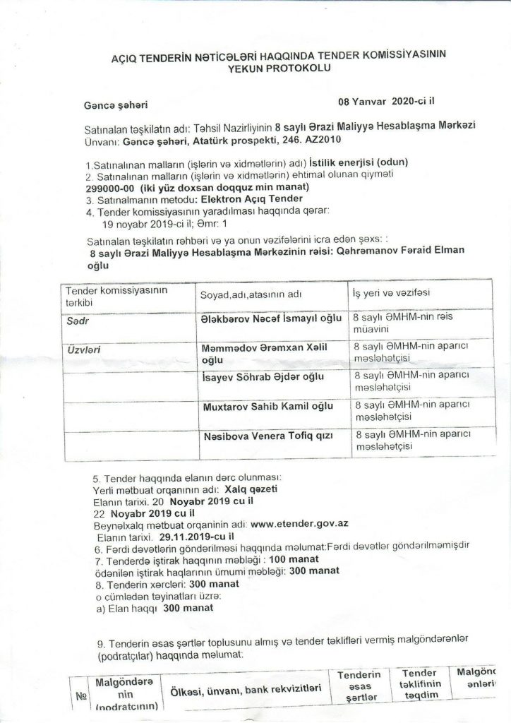 Diqqətinizə çatdıraq ki, Gəncə Şəhər 8 saylı Maliyyə Hesablaşma Mərkəzi, Təhsil Nazirliyinin tabeçiliyində olduğundan, nazirliyin “Elektron poçtuna” bu barədə mövqe bildirmək üçün ünvanladığımız məktublara cavab ala bilmirik.