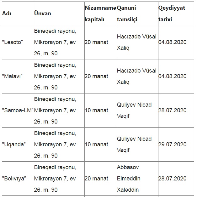 Qaçqınların və Məcburi Köçkünlərin İşləri üzrə Dövlət Komitəsinin (“Qaçqınkom”) Beynəlxalq Əlaqələr, İnformasiya və Mətbuat Xidməti Departamenti tərəfindən keçirilən tender müsabiqəsinin qalibi məlum olub. Yeniavaz.com açıqlanan rəsmi məlumatlara istinadən bildirir ki, tender müsabiqəsinin qalibi “6ES04Y4” MMC olub. “Qaçqınkom” fotostenlərin hazırlanması və quraşdırılması, həmçinin “Brand wall” (“Çərçivəli lövhə”) hazırlanması və quraşdırılmas ıüçün “6ES04Y4” MMC -yə 26 min 900 manat ödəyəcək. Məlumat üçün bildirək ki, 26,9 min manatlıq tender müsabiqəsinin qalibi olan “6ES04Y4” MMC cəmi 4 ay əvvəl – iyul ayının 28-də dövlət qeydiyyatına alınıb. Nizamnamə kapitalı 20 manat olan “6ES04Y4” MMC-nin hüquqi ünvanı “Binəqədi rayonu, Mikrorayon 7, ev 26, m. 90”-da yerləşir. Qanuni təmsilçisi isə Abbasov Elməddin Xaləddin oğludur. Qeyd edək ki, “Binəqədi rayonu, Mikrorayon 7, ev 26, m. 90” ünvanında qeydiyyatda olan və 4 ay əvvəl yaranan daha bir şirkət “Qaçqınkom”un sentyabr ayında keçirdiyi tender müsabiqəsinin qalibi olub. 13.07.2020-ci il tarixində dövlət qeydiyyatına alınan “Reliance-2020” MMC təxminən 2 ay sonra – 29.09.2020-ci il tarixində elan olunan tenderin qalibi olub və “Qaçqınkom”dan 40 min 800 manat alıb. Maraqlı məqamlardan biri də odur ki, iyul-avqust aylarında “6ES04Y4” MMC və “Reliance-2020” MMC -nin dövlət qeydiyyatına alındığı ünvanda onlarla şirkət qeydiyyata alınıb. Bu şirkətlərin bir-neçəsinin qanuni təmsilçisi eyni şəxslər olub. Belə ki, “Binəqədi rayonu, Mikrorayon 7, ev 26, m. 90” ünvanda dövlət qeydiyyatına alınan “6ES04Y4” MMC -nin qanuni təmsilçisi Abbasov Elməddin Xaləddin oğlu eyni zamanda “Bolıvıya” MMC-nin də rəhbəri olub. Onu da qeyd edək ki, bu şirkətləri birləşdirən təkcə onların eyni ünvanda qeydiyyatda olması deyil, eyni zamanda şirkət adlarındakı bənzərlik də bu şirkətlərin bir-birilə hansısa əlaqələrinin olduğunu göstərir. İyul-avqust aylarında “Binəqədi rayonu, Mikrorayon 7, ev 26, m. 90” ünvanda qeydə alınan şirkətlərin bəziləri bunlar olub: