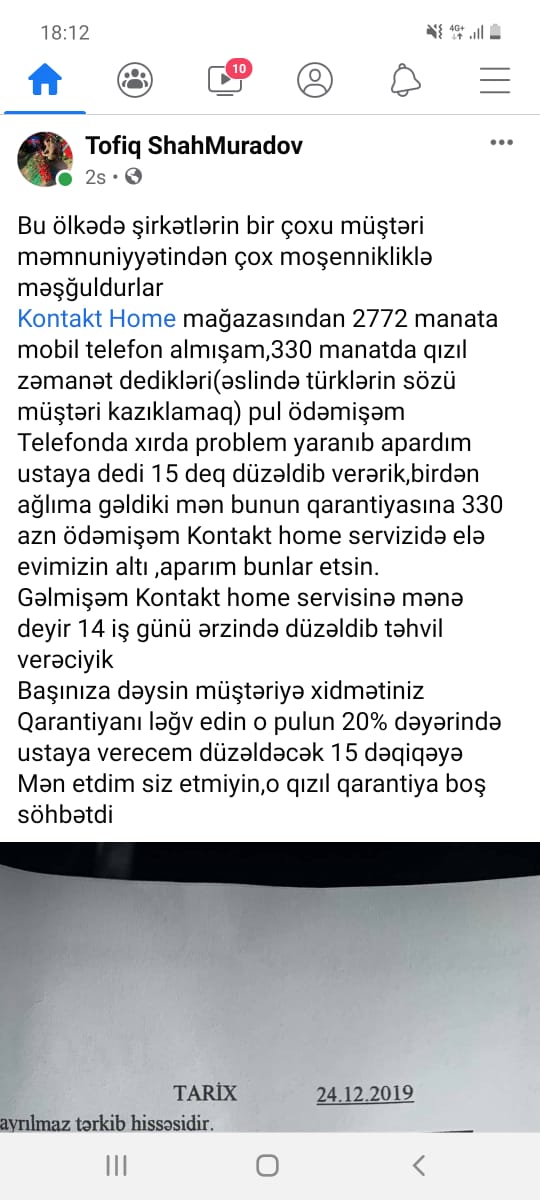 Azərbaycanda haqqında daha çox şikayətlər edilən və son zamanlar barəsində sosial şəbəkələrdə daha çox neqativ xəbərlər yayılan biznes qurumlarından biri də “Kontakt Home” mağazalar şəbəkəsidir. Məişət texnikası və mebel bazarında daha çox istehlak kreditləri portfeli olan şirkətlərdən biridir – “Kontakt Home”.