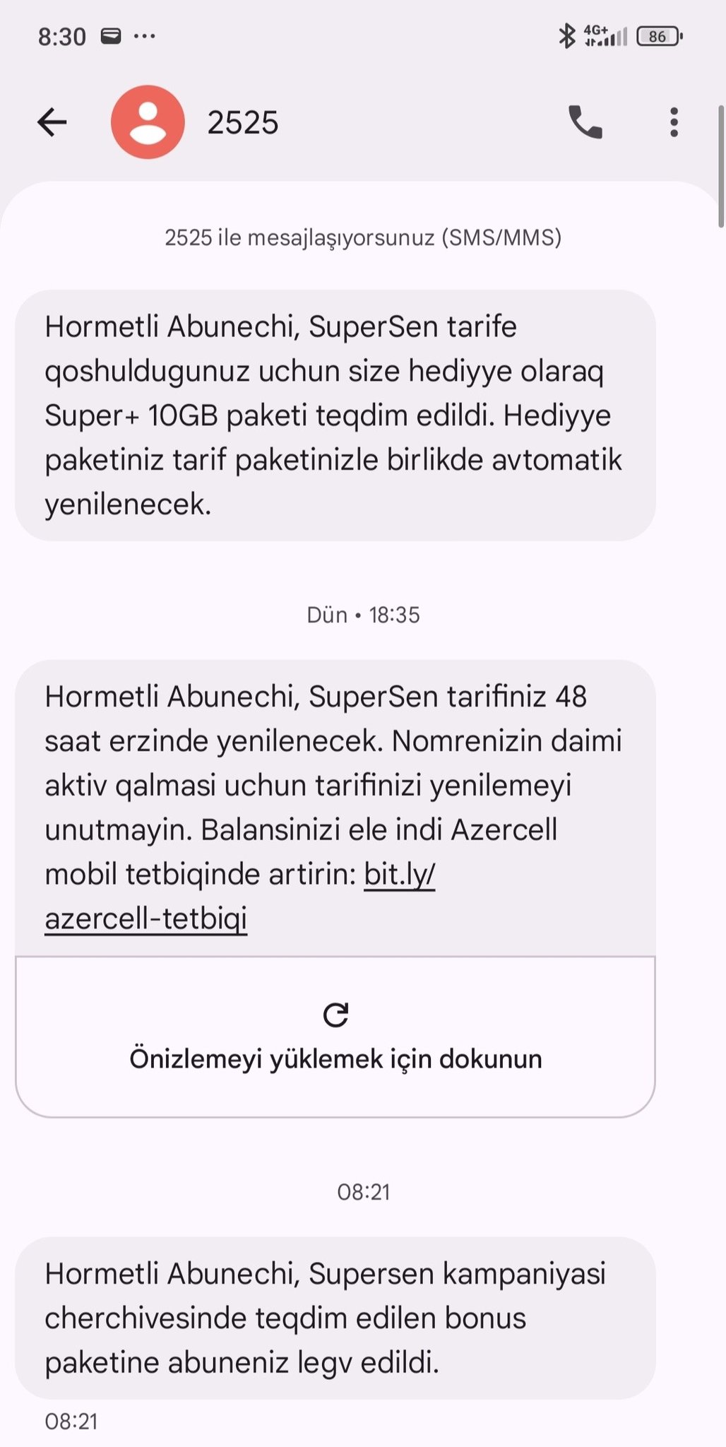 Dünən 48 saat ərzində yenilənmə ilə bağlı xəbərdarlıq gəlib və sonra heç 24 saat olmadan bonus abonəliyi ləğv edilib. "Azərcell"-lə əlaqə saxladıqda isə bu bonusun yalnız bir ay olduğu deyilir. Operatorların belə özbaşınalığına real nəzarət edən yoxdurmu?