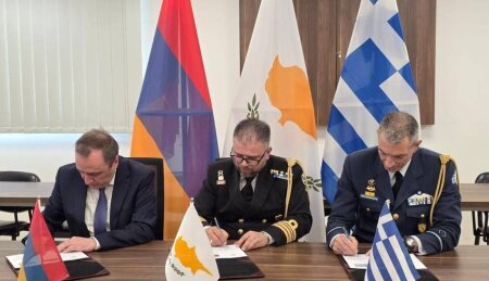 Aprelin 22-də Kiprdə ikitərəfli (Ermənistan-Kipr) və üçtərəfli formatlarda(Ermənistan-Yunanıstan və Kipr) müdafiə məsləhətləşmələri keçirilib. Musavat.com “ Xronika Kavkaza” istinadəmn xəbər verir ki, görüşlərdən sonra tərəflər illik hərbi əməkdaşlıq proqramlarını imzalayıblar.Nümayəndə heyətləri müdafiə islahatlarını və regional təhlükəsizliyi müzakirə ediblər və əməkdaşlığı genişləndirmək barədə razılığa gəliblər. İştirakçılar son illərdə tərəfdaşlıqlarının dinamik inkişafını yüksək qiymətləndiriblər.