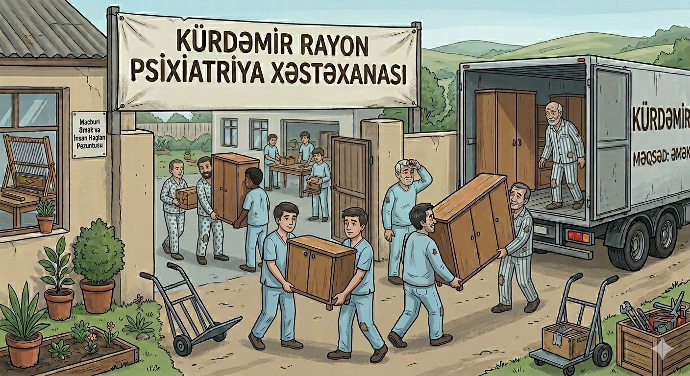 " 19.03.2026 ci il tarixdə xəstəxanaya daxil olarkən dəhşətli mənzərə ilə qarşılaşdıq. Tibbi yardıma möhtac xəstələrin yük avtomobilindən ağır inventarları , şkafları binanın daxilinə daşımağa məcbur edildiyinin şəxsən şahidi olduq. Bu, Azərbaycan qanunvericiliyi və beynəlxalq konvensiyalara görə işgəncə və qul istismarıdır."