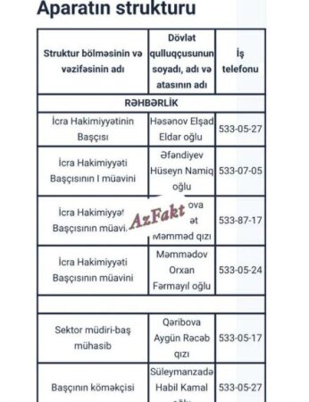 AzFakt.com xəbər verir ki, İcra Hakimiyyətinin baş mühasibi A.Qəribovanın obyekti Yasamal rayonunun Arif Mehdiyev küçəsində yerləşir.