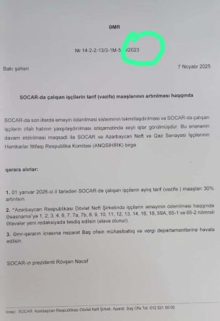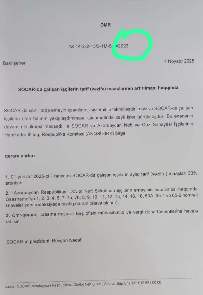 Belə ki, əmrdə imza tarixi 2025-ci il göstərilsə də, sənədin nömrələnmə hissəsində 2023 rəqəminin yer alması istifadəçilər tərəfindən ziddiyyət kimi qiymətləndirilib.