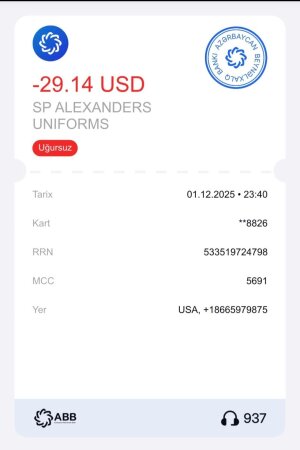 "Gecə-gecə ABB kartımdan ödəniş cəhdi olub. Ölkə olaraq USA yazılıb. Heç bir yerə də abunəliyim yoxdur. Tez kartı blokladım..." "DİA-AZ" xəbər verir ki, bu barədə"AZBank Klubu" sosial qrupundakı paylaşımında Şölət Səmədov adlı istifadəçi gileylənir.