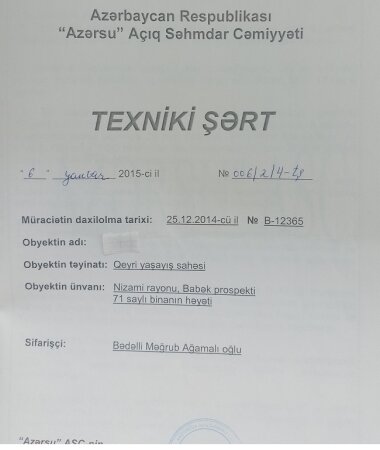 2-3. 06.01.2025-ci il tarixli texniki şərt və obyektin altından su və kanalizasiya xəttinin keçmədiyi haqqında sxem;