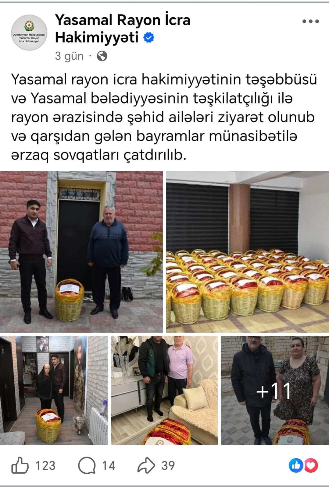 Tribuna.az xəbər verir ki, icra hakimiyyətinin payladığı sovqatla bağlı paylaşımına şərh yazan Şahin Əliyev bildirib ki, bunların hamısı yalandır: