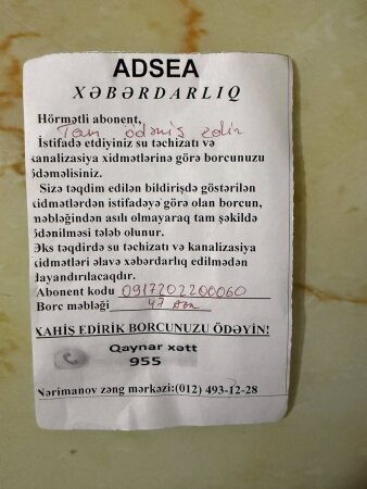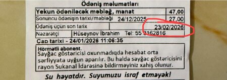 Narazı vətəndaş daha sonra bildirir: "İki gün əvvəl yeni ay üzrə ödəniş bildirişi qapıya yapışdırılıb və həmin bildirişdə borcun 23.02.2026 tarixinə qədər ödənilməsi mümkün olduğu açıq şəkildə qeyd olunub.