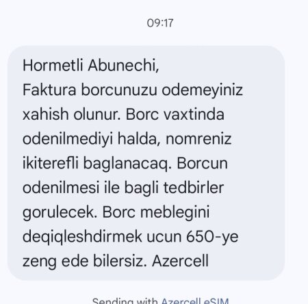 Böyük bir korporasiyanın (Azercell) tək bir vətəndaşa belə rəsmi dildə mesaj yazması "Davit və Qoliaf" effektini yaradır. Şirkət özünü çox güclü, sizi isə çarəsiz tərəf kimi göstərməyə çalışır. Bu, insanda stress və tələskənlik yaradır ki, sorğu-sual etmədən gedib ödəniş etsin.