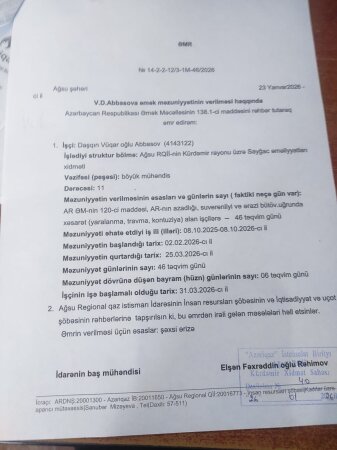 Bir müharibə veteranının qanuni haqqının bu şəkildə gecikdirilməsi qəbuledilməzdir. Hüquqlarımın kobud şəkildə pozulmasına son qoyulmasını, məzuniyyət ödənişimin dərhal köçürülməsini və gecikdirilmiş günlərə görə kompensasiyanın hesablanmasını tələb edirəm. Əks halda məsələni aidiyyəti dövlət qurumları qarşısında rəsmi qaydada qaldıracağımı və hüquqi müstəvidə davam etdirəcəyimi bildirirəm".