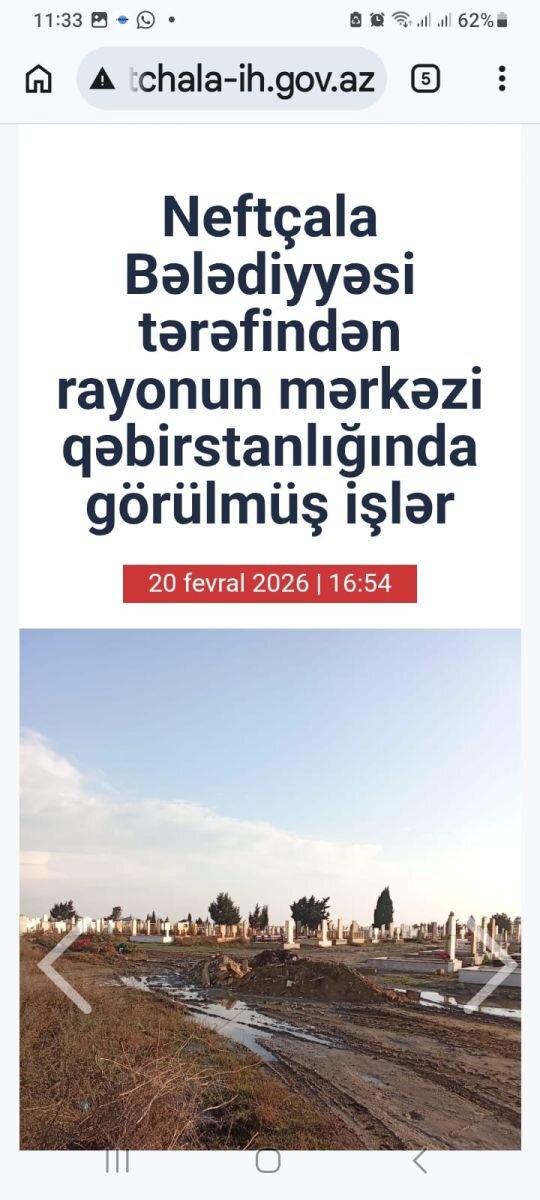 Rəsmi açıqlamada bildirilir ki, rayonun mərkəzi qəbiristanlığında dəfnlərin rahat keçirilməsi və nəqliyyat vasitələrinin hərəkətinin təmin olunması məqsədilə 400 metrlik hissədə hamarlanma işləri aparılıb, hərəkət üçün əlverişli şərait yaradılıb.