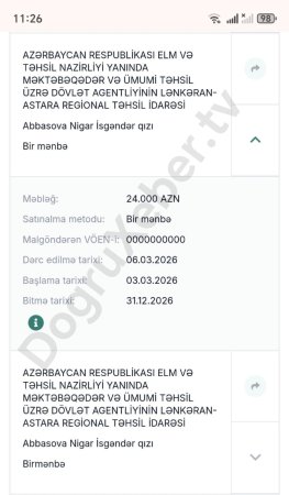 Mövzu ilə bağlı Lənkəran-Astara Regional Təhsil İdarəsinin rəsmi mövqeyi də maraq doğurur. Əgər portala yerləşdirilən məlumat texniki səhv nəticəsində iki dəfə dərc olunubsa, bunun izahı ictimaiyyət üçün açıqlanmalıdır. Əks halda isə iki eyni məbləğli və eyni tarixli müqavilənin hansı əsaslarla bağlanması məsələsi aydınlaşdırılmalıdır.